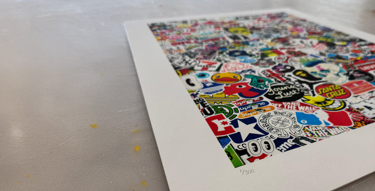“These pieces are actually photographed images of my 2 sons bedroom doors that I started to sticker bomb due to boredom during the first weeks of covid lockdown in March/April 2020.