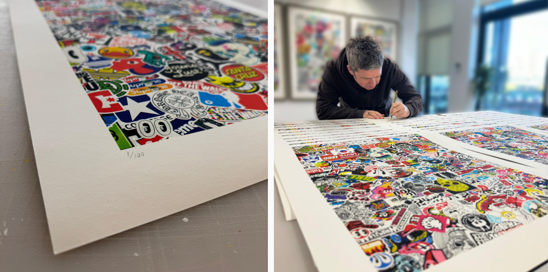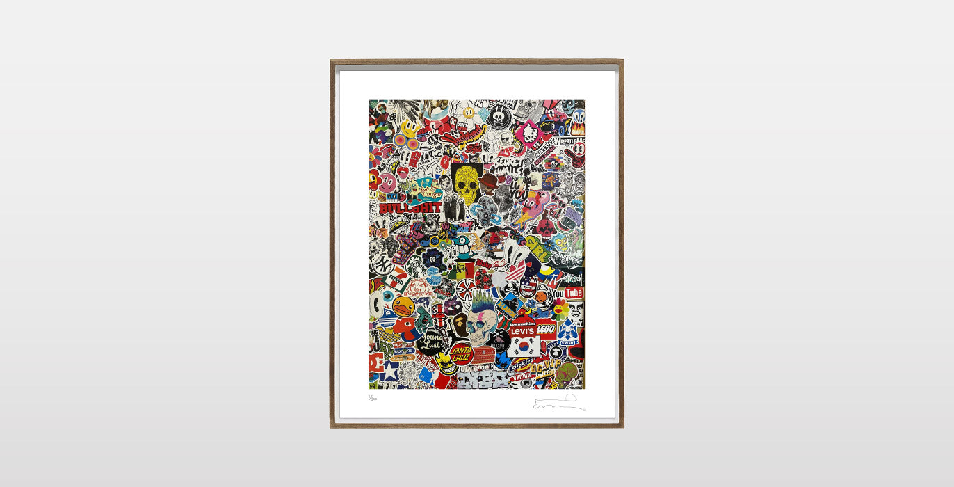 “These pieces are actually photographed images of my 2 sons bedroom doors that I started to sticker bomb due to boredom during the first weeks of covid lockdown in March/April 2020.